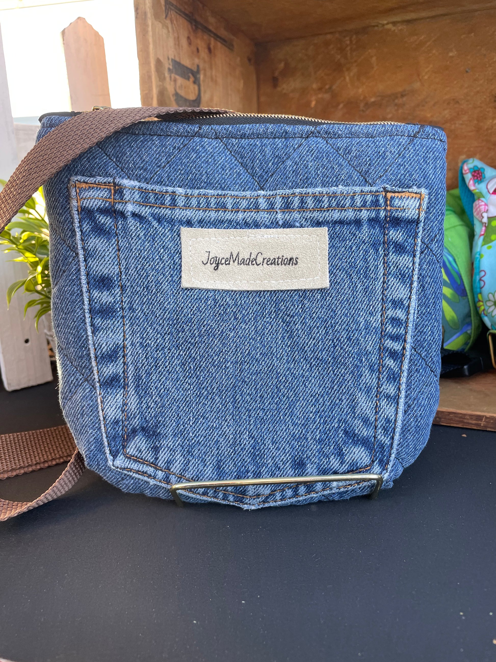 - Transform your style with our handmade Denim Crossbody Purse with a soft brown bandana lining.