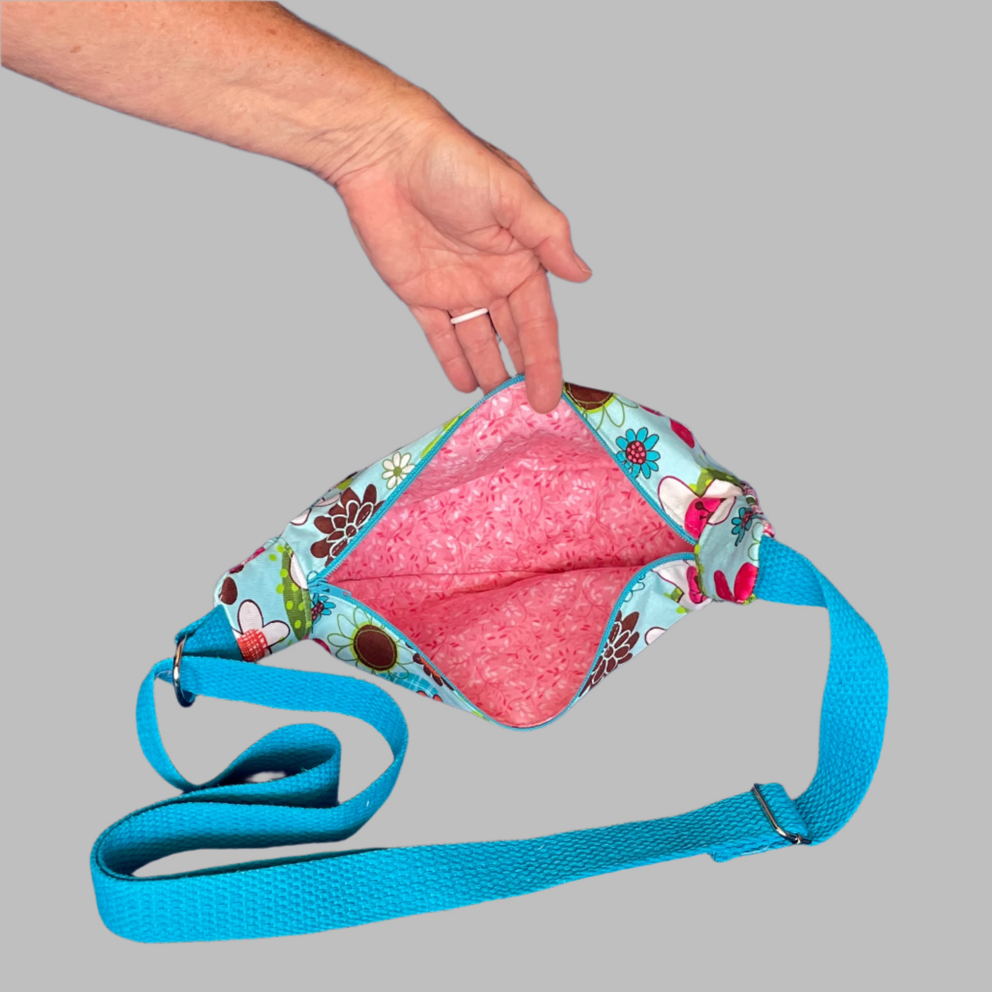 - Handcrafted with thrifted whimsical floral cotton with a Hippie vibe.